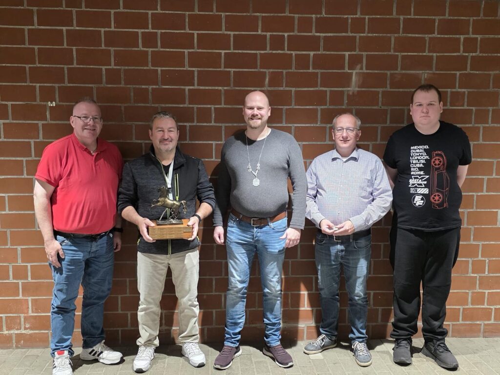 Von links nach rechts: Ingo (2.Platz Herbstkönig), Atha (Gewinner des Niedersachsenrosses), Jan (1.Platz Herbstkönig), Maik (3.Platz Herbstkönig), Falk (Schießunteroffizier).